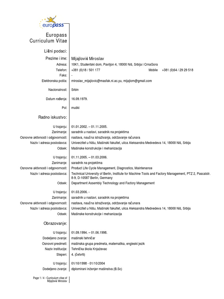 Europass cv is a personal document which aims at presenting a citizen's knowledge, skills, competences and qualifications, as well as other personal data europa. ▪ aleksynska, m., shevchuk, a., strebkov, d.